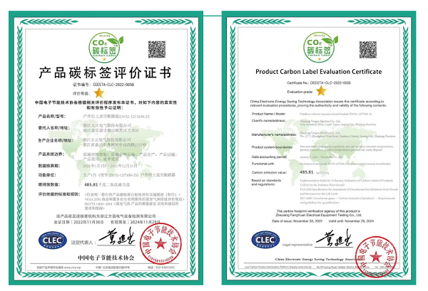 此次碳标签评价表明,米兰体育电气生产的户外柱上真空断路产品,在碳排放大数据方面按国际通行惯例推进,并具备一定的优势,对促进产品全供应链的温室气体减排,达成“双碳”目标具有积极作用。此外,米兰体育还获中国电子节能技术协会颁发的低碳产品供应商证书